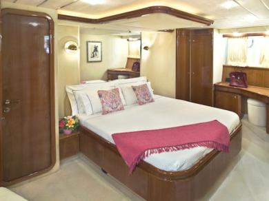 Ce magnifique bateau est disponible avec trois membres d'équipage Vous bénéficiez de 4 cabines, deux doubles, et deux twins Vous disposez dans le bateau de tout le matériel de plongée, d'équipements pour les sports nautiques (wakeboard, ski, bouée etc ...) Vous retrouverez sur les photos le confort de ce bateau de luxe. Le tarif est à partir de 19600€ HT par semaine. N'hésitez pas à nous envoyer une demande de devis, nous étudierons votre demande