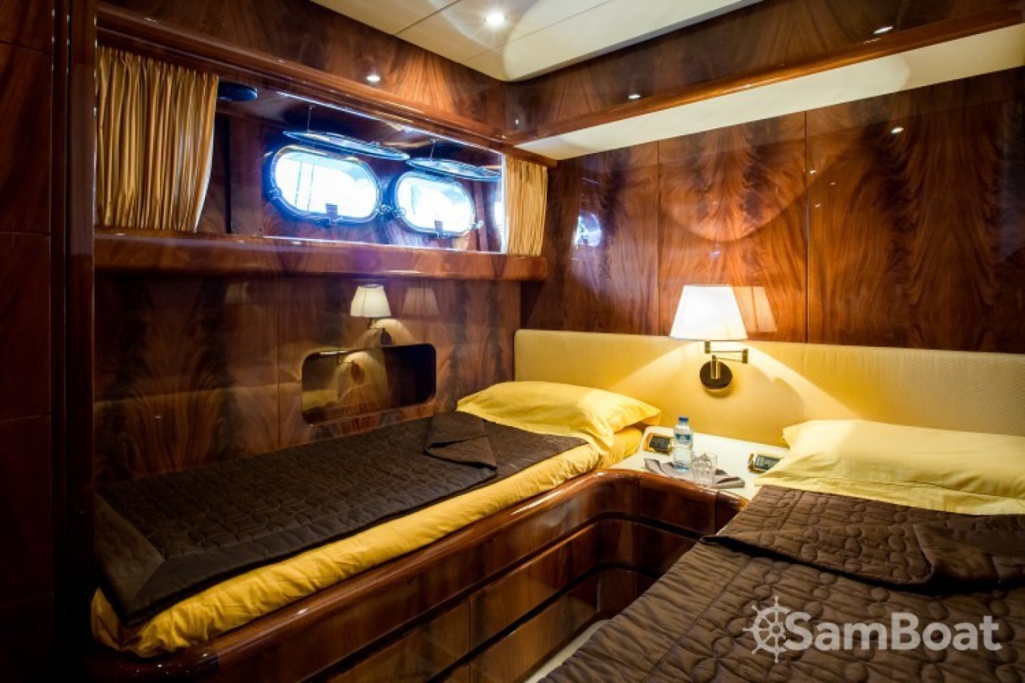 Ta wspaniała łódź jest dostępna z dwoma członkami załogi. Korzystasz z 3 kabin, w tym dwóch dwuosobowych i jednej z dwoma pojedynczymi łóżkami. Na łodzi masz cały sprzęt do nurkowania, sprzęt do sportów wodnych (wakeboard, narty, boja itp.) Na zdjęciach znajdziesz komfort tej luksusowej łodzi. Cena wynosi 21 500 euro bez podatku tygodniowo. Nie wahaj się i wyślij nam zapytanie ofertowe, rozpatrzymy Twoją prośbę