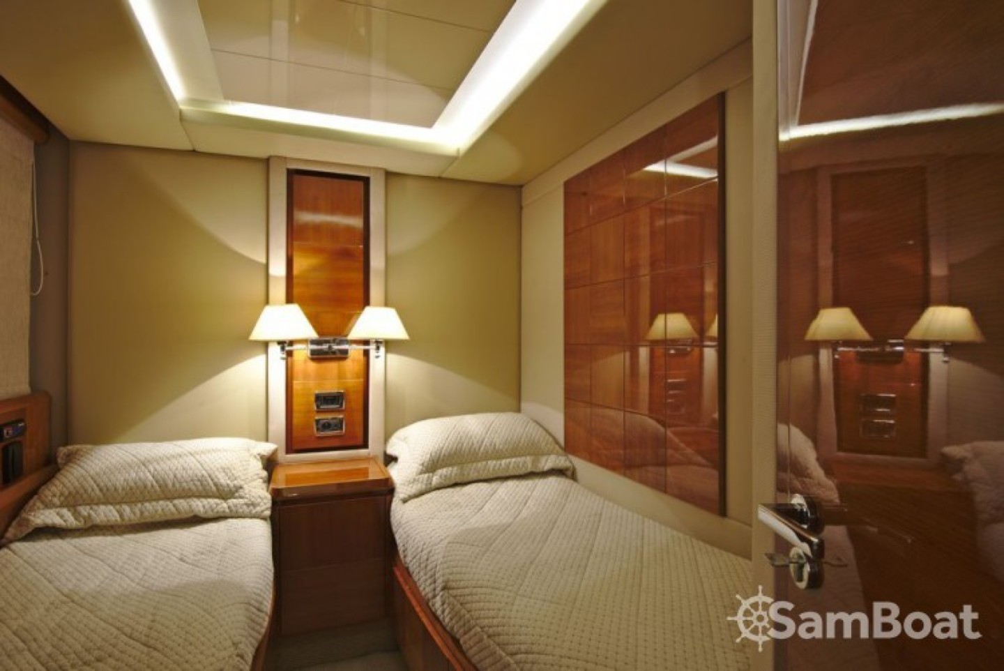 Ta wspaniała łódź jest dostępna z trzema członkami załogi. Korzystasz z 3 kabin, w tym dwóch dwuosobowych i jednej z dwoma pojedynczymi łóżkami. Na łodzi masz cały sprzęt do nurkowania, sprzęt do sportów wodnych (wakeboard, narty, boja itp.) Na zdjęciach znajdziesz komfort tej luksusowej łodzi. Cena wynosi 28 000 euro bez podatku tygodniowo. Nie wahaj się i wyślij nam zapytanie ofertowe, rozpatrzymy Twoją prośbę