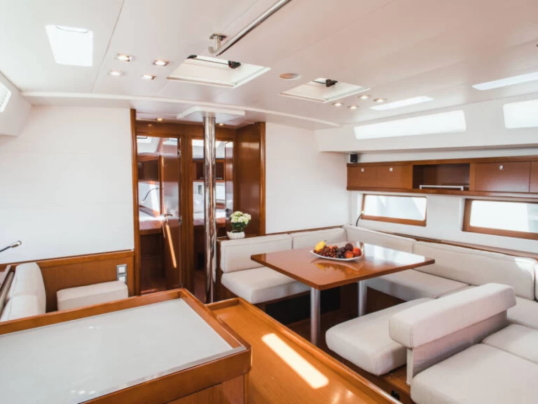We offer for rent a Oceanis 55 of 2017 departing from Seget Donji. Esther is a sailboat perfectly adapted for all rentals. This sailboat is very pleasant to handle for a week cruise or more. You are going to have an exceptional cruise on this sailboat of 17 meters. You will be able to accommodate up to 12 passengers when cruising and take advantage of its 4 cabins with total comfort. This Oceanis 55 is equipped with 4 heads with a shower. This boat is equipped with a Full batten mainsail and a Furling genoa. It has the following equipment: Auto-pilot, Bow thruster, Outdoor Speakers, Deck shower, Swim platform, Bluetooth connection, Outdoor fridge. Don't hesitate to contact us for a quote, you will be helped by a SamBoat expert on your holiday project.