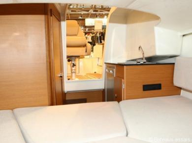 Wewnątrz CAP CAMARAT 7.5 WA posiada kabinę z kabiną podwójna koja z lodówką, umywalką i toaletą morską.