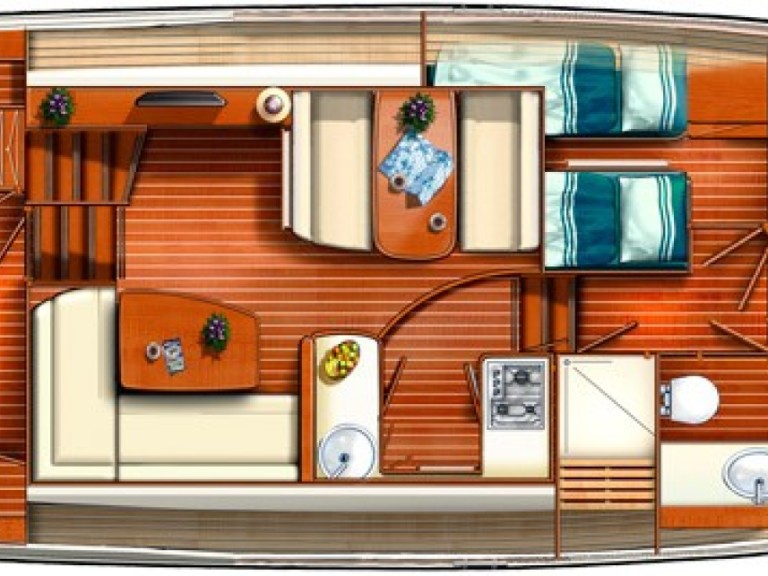 Das Boot verfügt über 3 komfortable Kabinen für bis zu 6 Personen. Mit seinen 13 Metern Länge und einer Motorleistung von 110 PS bietet sich das Schiff als idealer Begleiter für einen unvergesslichen Bootsurlaub in der Umgebung von Mirow.