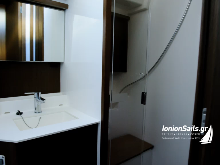 Ta łódź jest wyposażona w Grot rolowany i w Genua rolowana. Posiada nateępujące wyposażenie: Autopilot, Ster strumieniowy, TV, Głośniki zewnętrzne, Wtyczka USB, Prysznic mostowy, Wciągarka elektryczna, Zmywarka.