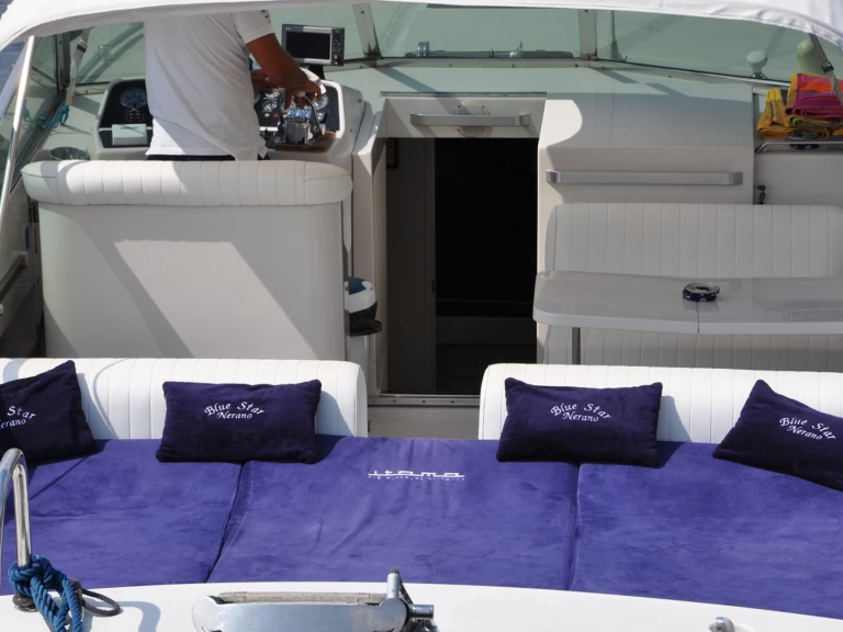 Le Blue-Star Itama 38 affiche des lignes épurées et un style résolument sportif, conçu pour offrir des sensations fortes en mer. Son spacieux pont arrière et son vaste bain de soleil invitent à la détente sous les rayons du soleil méditerranéen, tandis que son design intemporel séduit les passionnés de yachting.