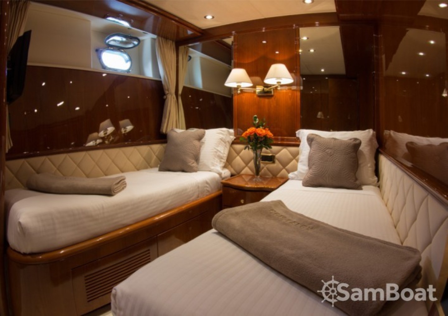 Ta wspaniała łódź jest dostępna z pięcioma członkami załogi Korzystasz z 4 kabin, dwóch dwuosobowych i dwóch bliźniaczych Na łodzi masz cały sprzęt do nurkowania i sprzęt do sportów wodnych (wakeboard, narty, boja itp.) Na zdjęciach znajdziesz komfort tej luksusowej łodzi. Cena wynosi 52 000 euro bez podatku tygodniowo. Nie wahaj się i wyślij nam zapytanie ofertowe, rozpatrzymy Twoją prośbę